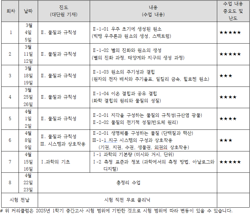 26. 3월 고1 통합과학 내신대비