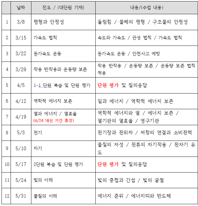 학습 진도 역시 실제 수업 상황에 따라 달라질 수 있는 점 양해 부탁드립니다.